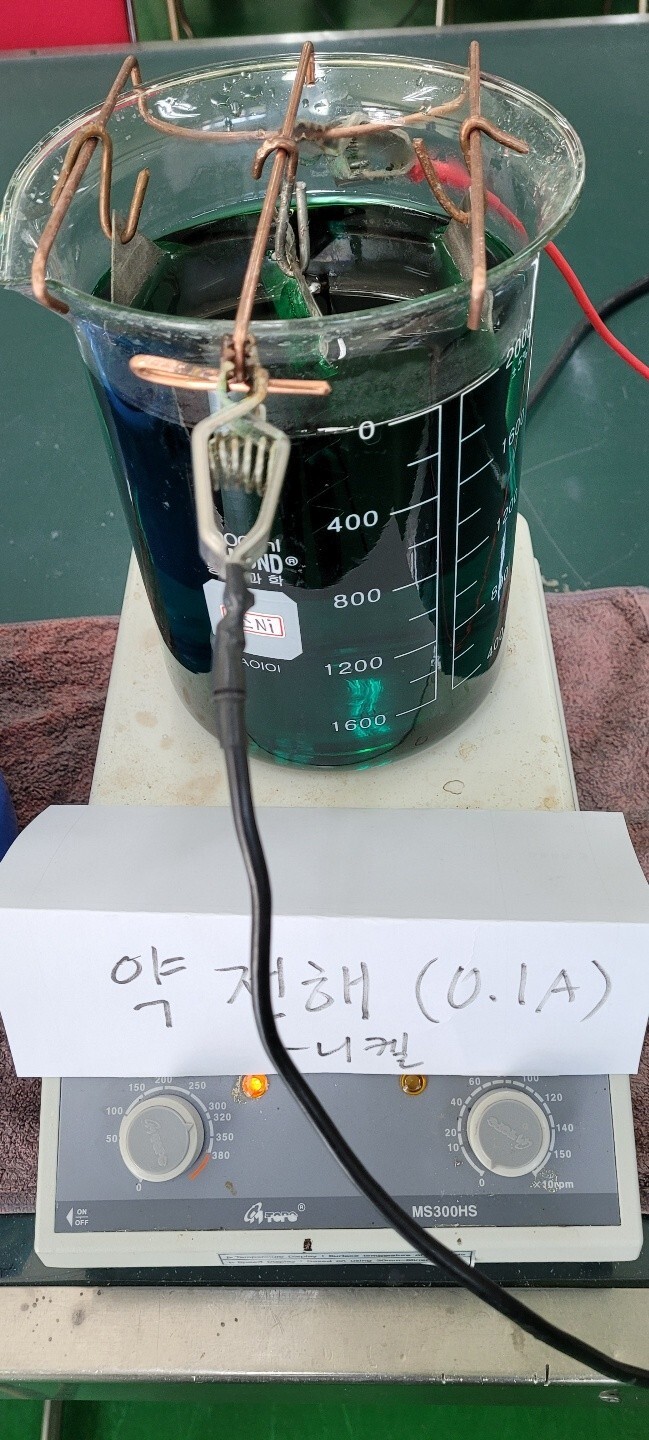 약전해 까지 진행하고, 불순물이 제거된 용액을 통해 광택 니켈 도금을 진행하였습니다.