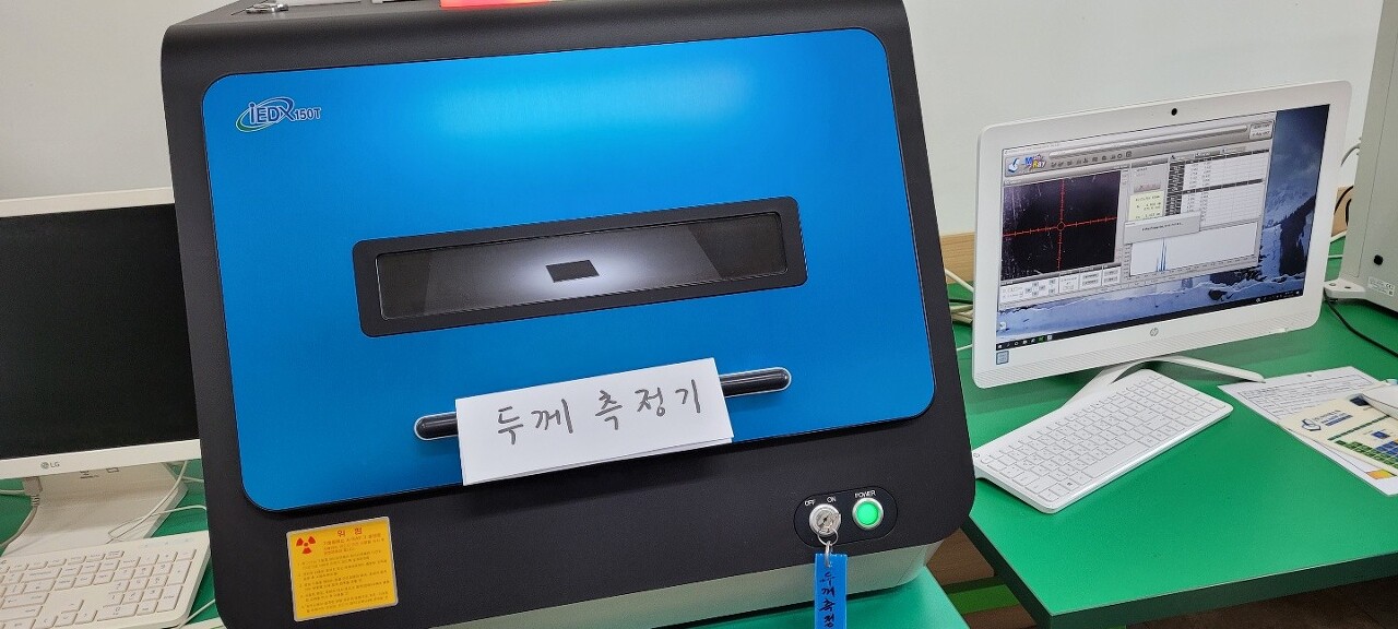 이후에는 X-RAY 두께 측정기를 통하여, 가운데 부분과 모서리 부분의 두께를 측정하여 평균값을 구하고 실제 효율을 구해볼 수 있었습니다.
