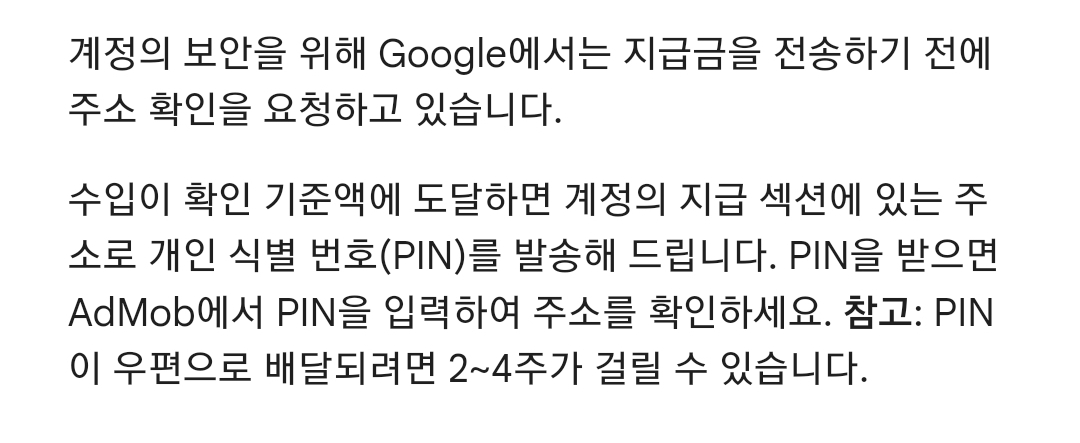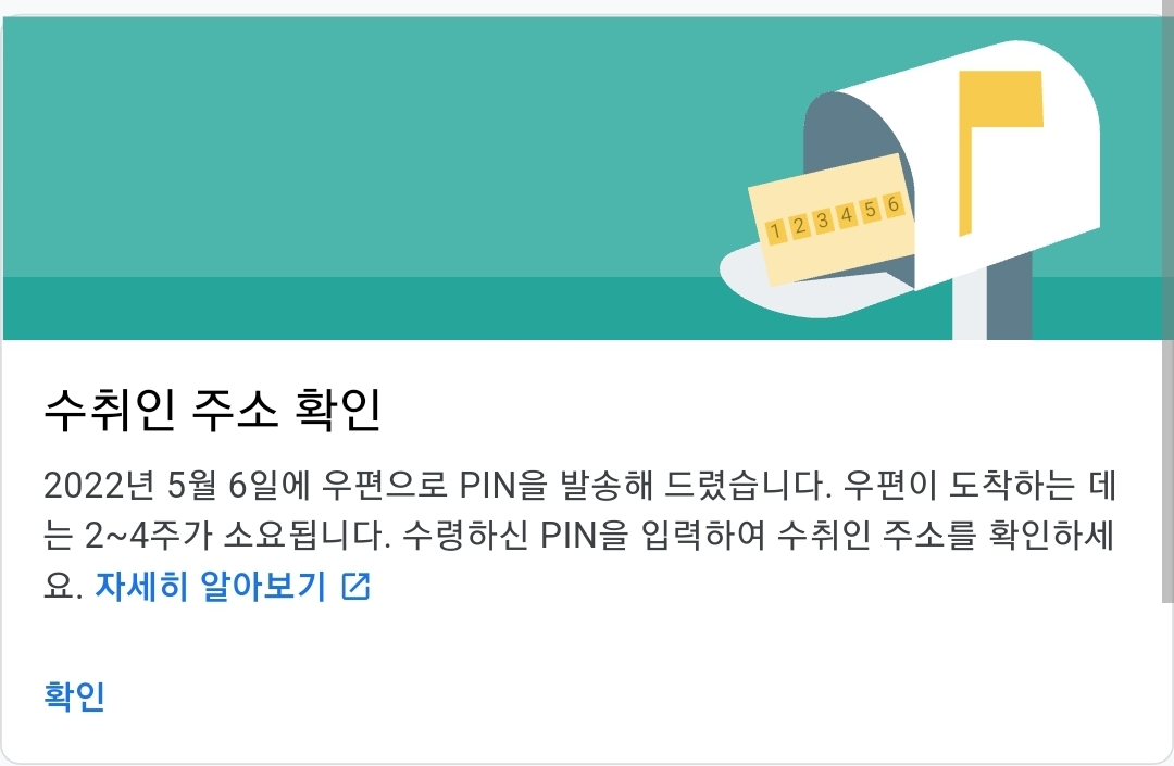 구글에서 지급금을 전송하기 위한 개인 식별로써, 우편을 받아 우편에 써있는 PIN 번호를 입력해야 되는 부분입니다.
