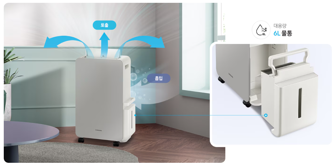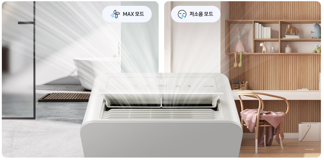 - 장마철 빨래 건조가 고민: 실내 습도 급상승 시 자동으로 출력을 올려 건조 시간을 줄이는 데 도움.