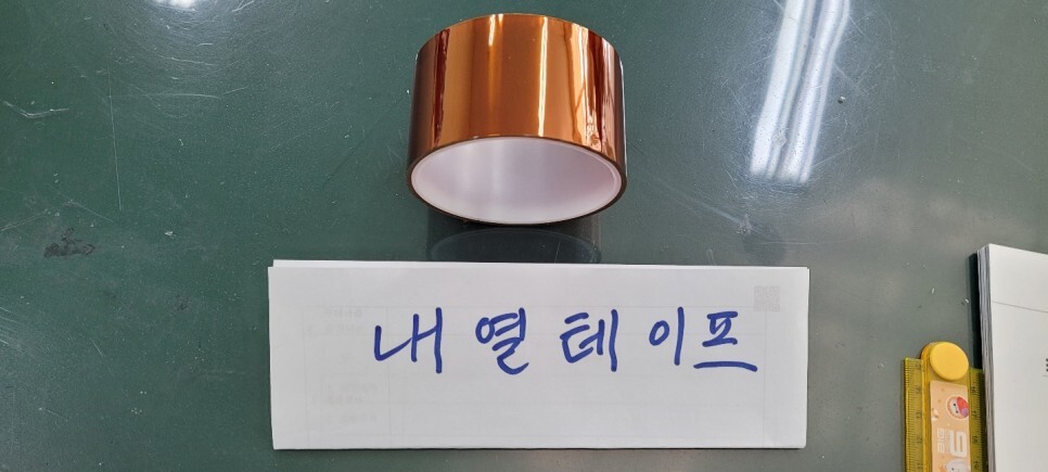 이후, 불필요하게 큰 내열테이프부분을 칼로 잘라내고, 음각으로 하던지 양각으로 하던지 이름을 칼로 파내는 작업을 했습니다.