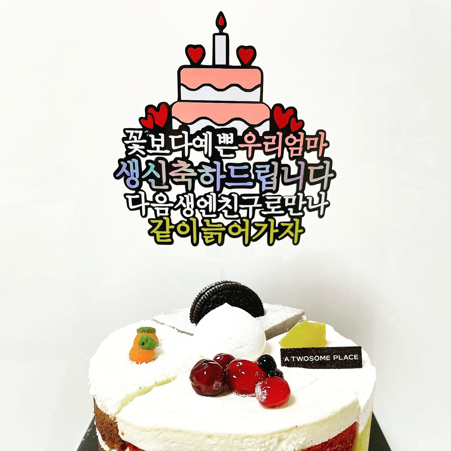 어머니 지인분께서 부탁한 토퍼인데, 이것도 살짝 글씨가 삐뚤게 붙어졌네요.