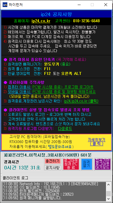 ip24 원격 접속 서비스 (ip24.co.kr) 입니다.
