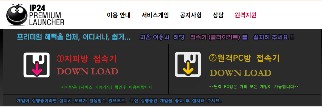 집에서 원격으로 PC방 환경을 즐기는 방법을 이용했습니다.